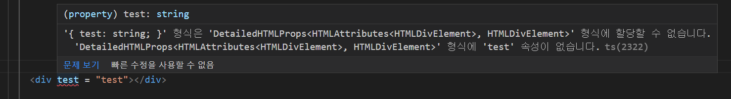 TypeScript에서는 타입을 지정하지 않고, 임이의 props를 사용할 경우 오류를 뱉습니다.. 아래 사진처럼요..