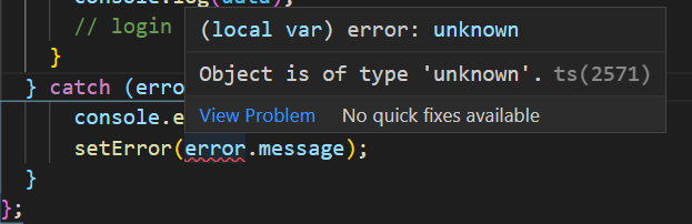 [TS] Object is of type 'unknown'.ts(2571) (error object)