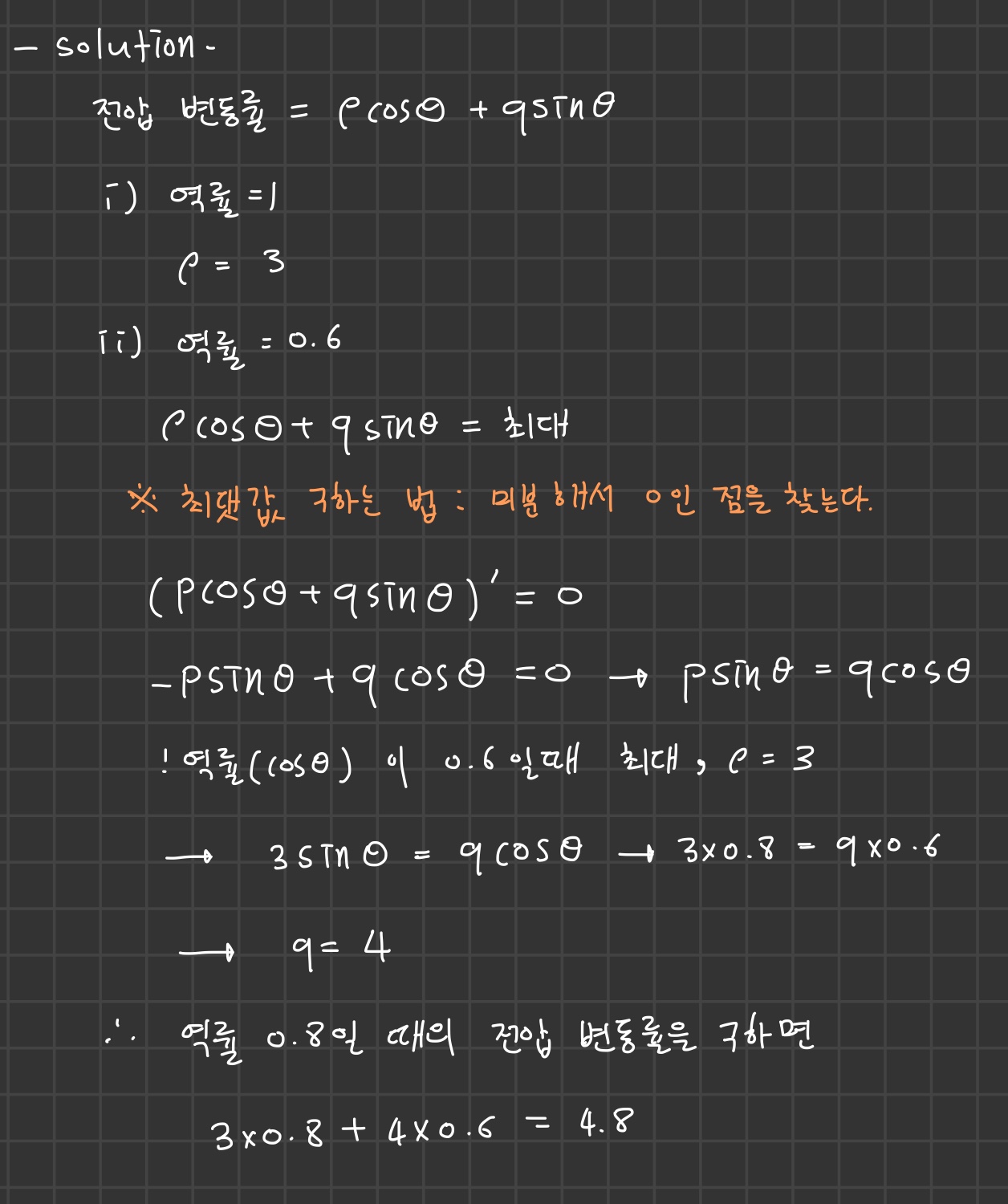 eungwang1 2021. 4. 21. 12:48부하의 역률이 0.6일 때 전압 변동률이 최대로 되는 변압기가 있다. 역률 1일때의 전압 변동률이 3[%]라고 하면 역률 0.8에서의 전압 변동률은 몇 [%]인가?