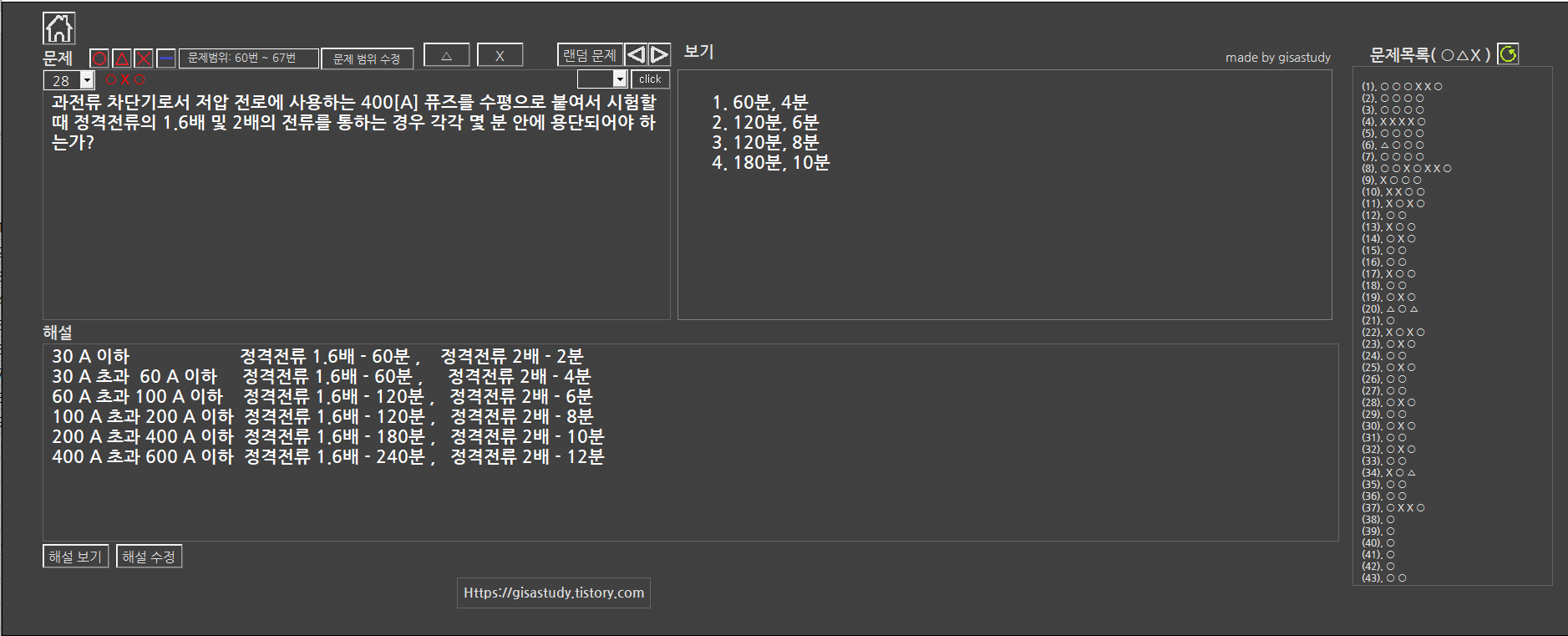 면서 헷갈리는 문제들을 프로그램에 정리했습니다. KEC개정으로 사라진 문제들은 제외시켰습니다.
